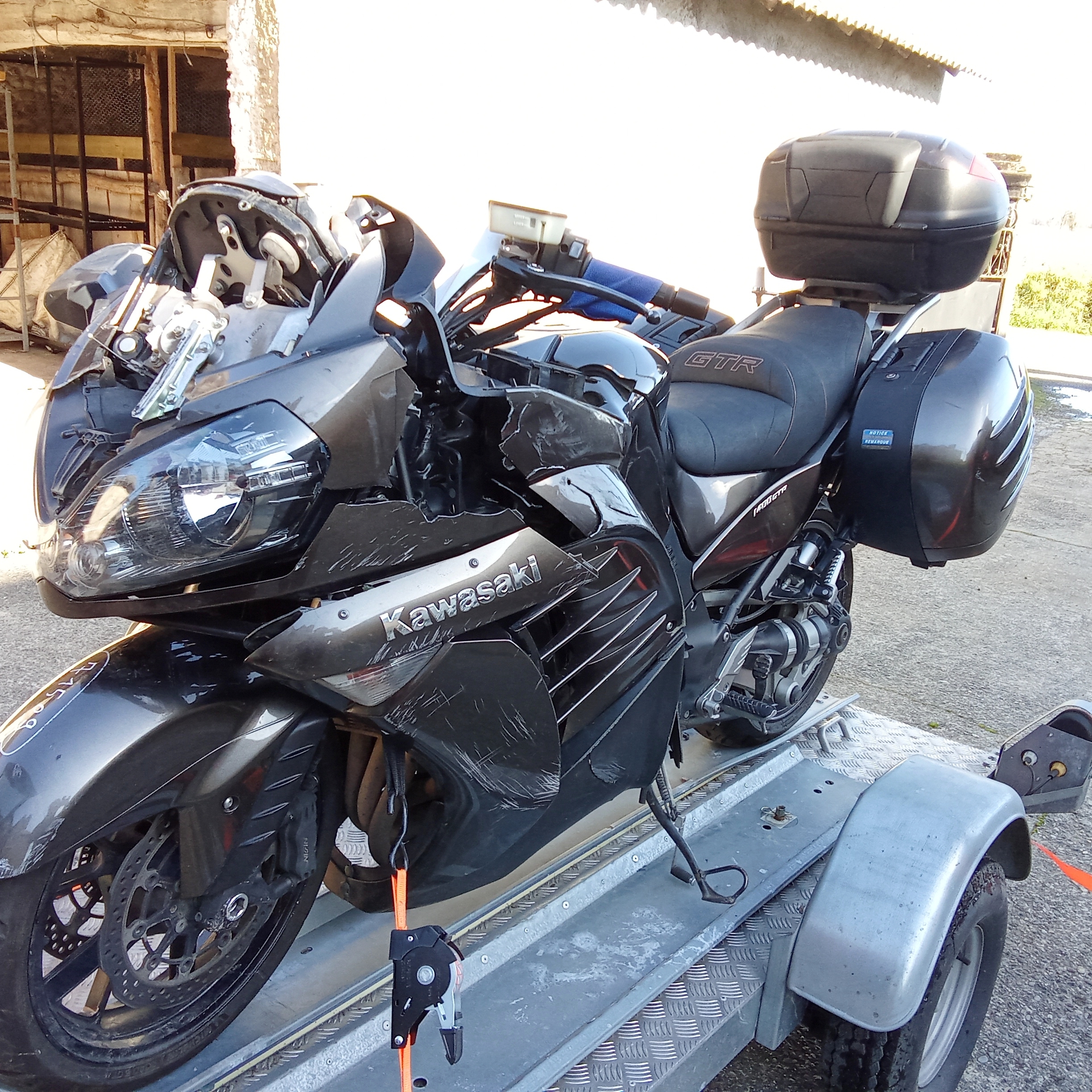 A vendre moteur Kawasaki 1400 gtr sorti d'une moto accidentée avec 80000 km.